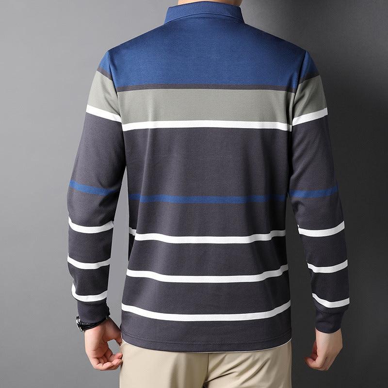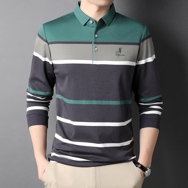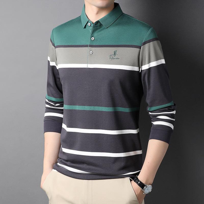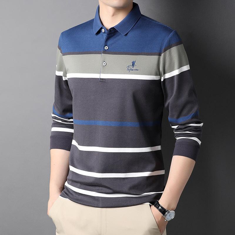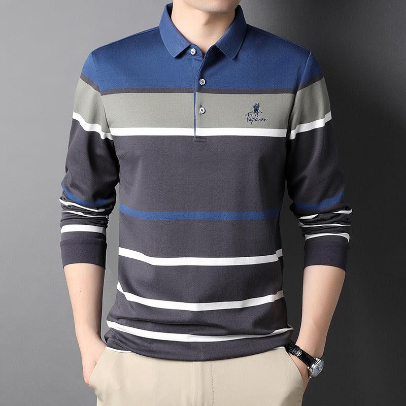 Camiseta de manga larga de algodón con solapa para hombre, camisa POLO holgada a rayas Yubi a la moda para hombre, venta al por mayor