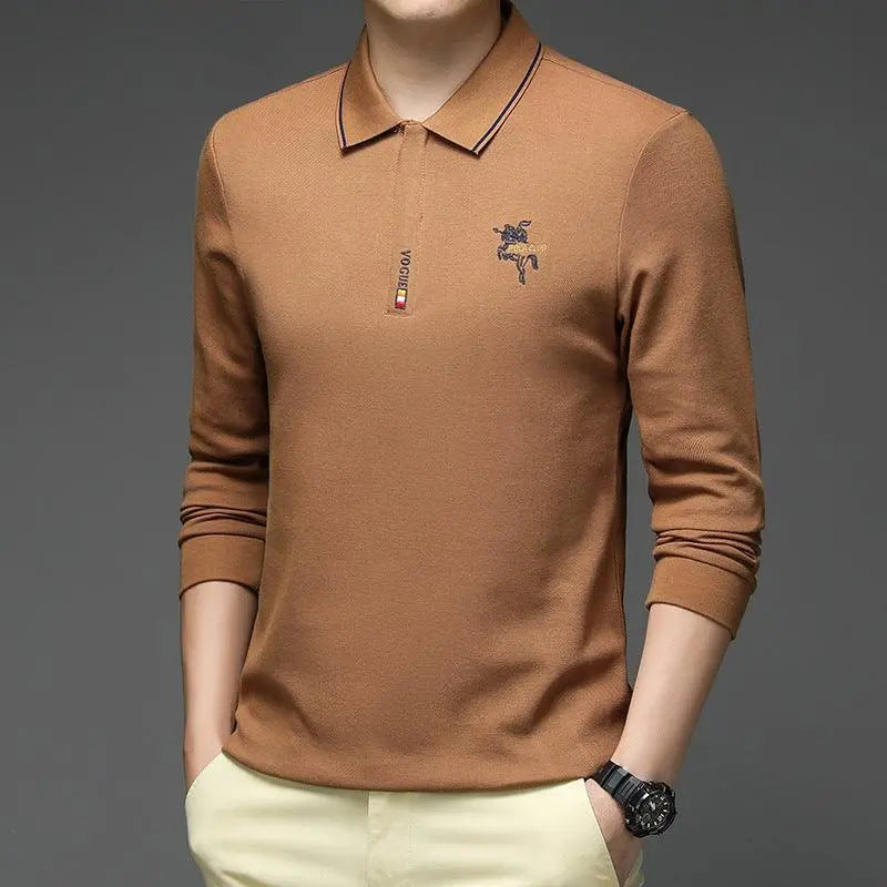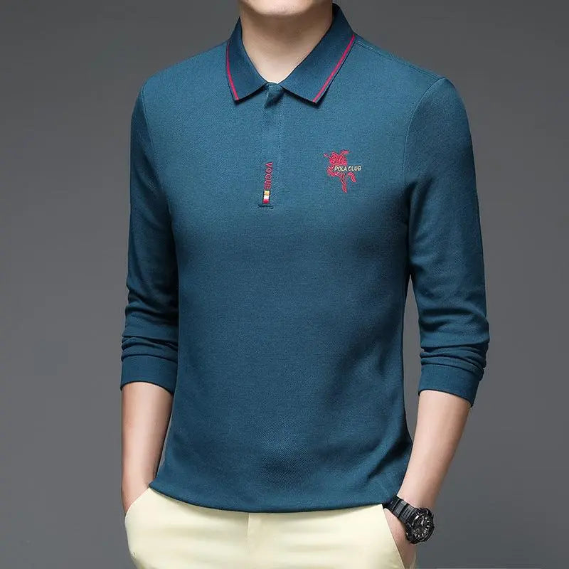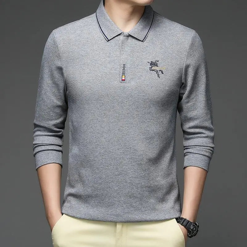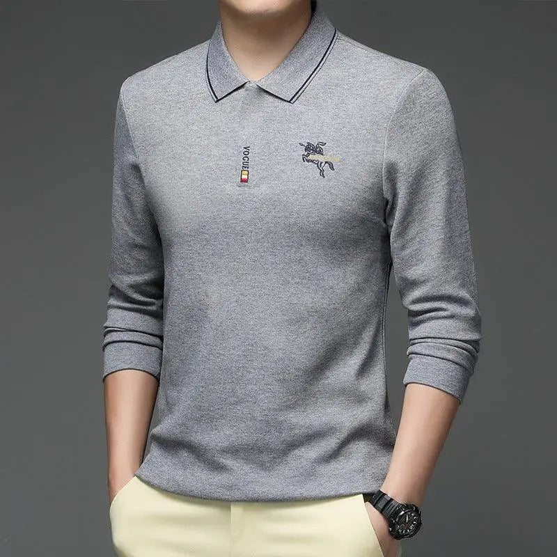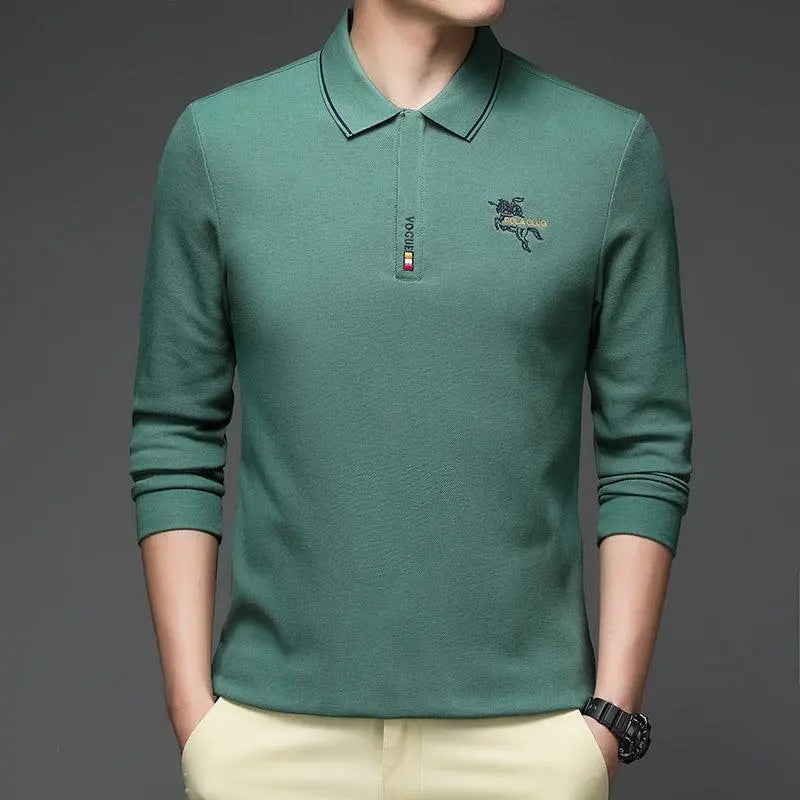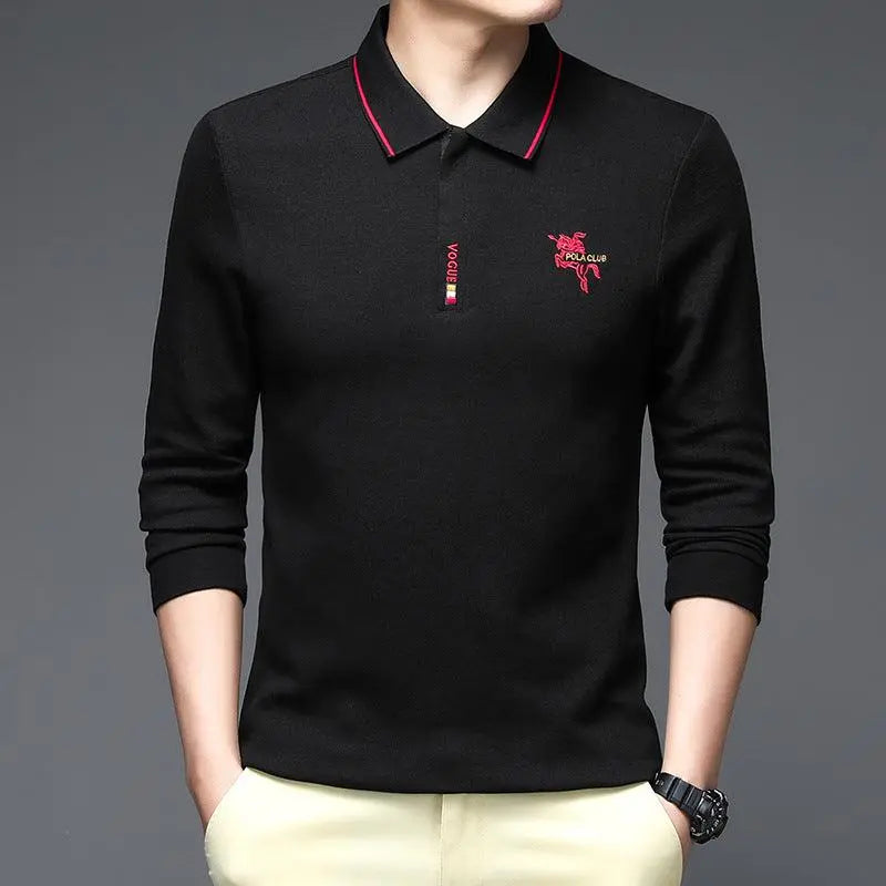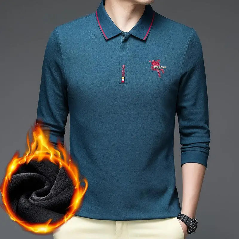 Camiseta POLO de algodón de terciopelo para hombre, camiseta informal de manga larga con solapa y parte inferior cálida para hombre