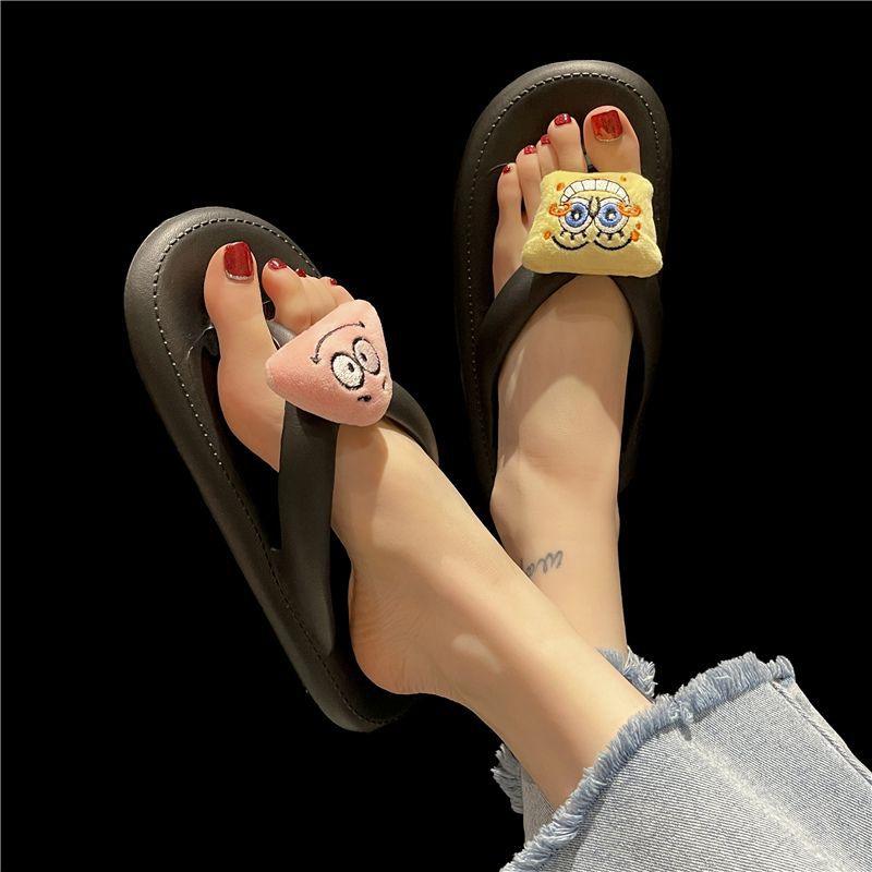 Chanclas de dibujos animados para mujer, ropa de abrigo de fondo plano, sandalias antideslizantes para el hogar, novedad de primavera de 2023