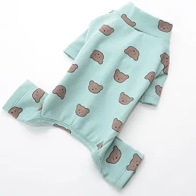 Ropa de algodón para mascotas, pijamas con patrón de oso para perros, mono, abrigo de 4 patas, camiseta con cuello redondo, conjunto de sudadera, pijamas, monos, ropa para cachorros y gatos