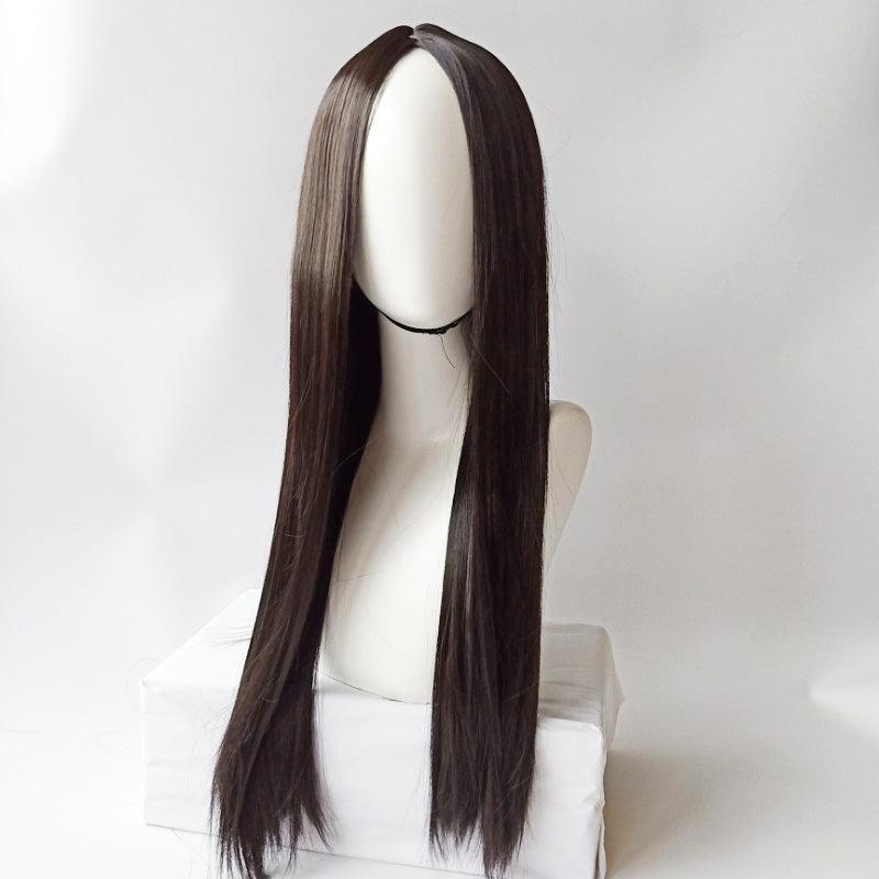 Nuevas pelucas de comercio exterior transfronterizas para damas en rama negra, cultivo de cabello liso, alambre de alta temperatura europeo y americano, venta al por mayor