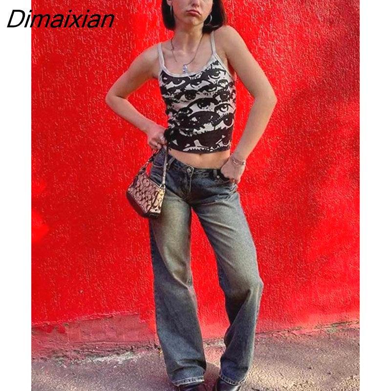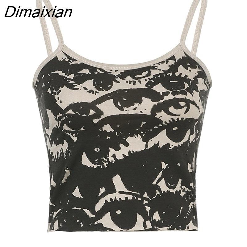 Camiseta con estampado de retrato de Dimaixian, Tops cortos estéticos Y2K, chaleco de manga corta, camisetas Harajuku, ropa de calle con tirantes blancos, ropa para mujer
