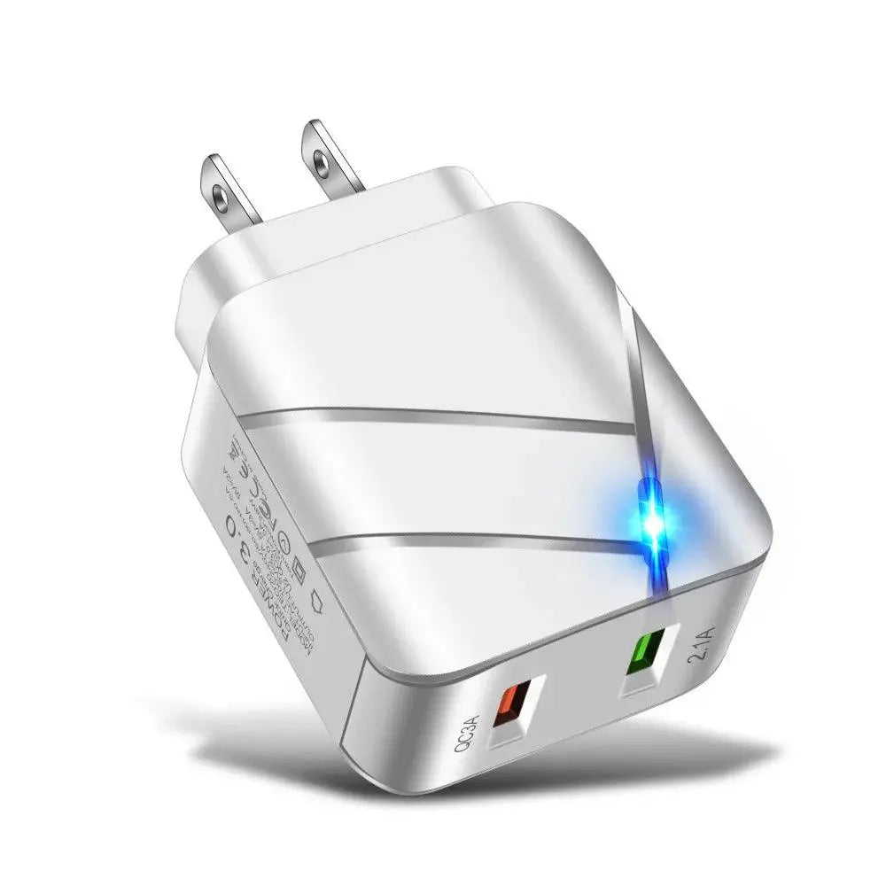 Cargador de teléfono móvil de carga rápida multipuerto USB Qc3.0 + 2.1a doble puerto estándar americano carga rápida estándar europeo