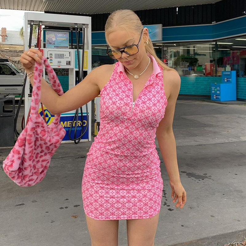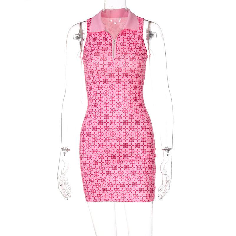Ropa de mujer estilo ins europeo y americano, vestido corto ajustado sin mangas con cuello polo estampado a la moda, otoño 2021