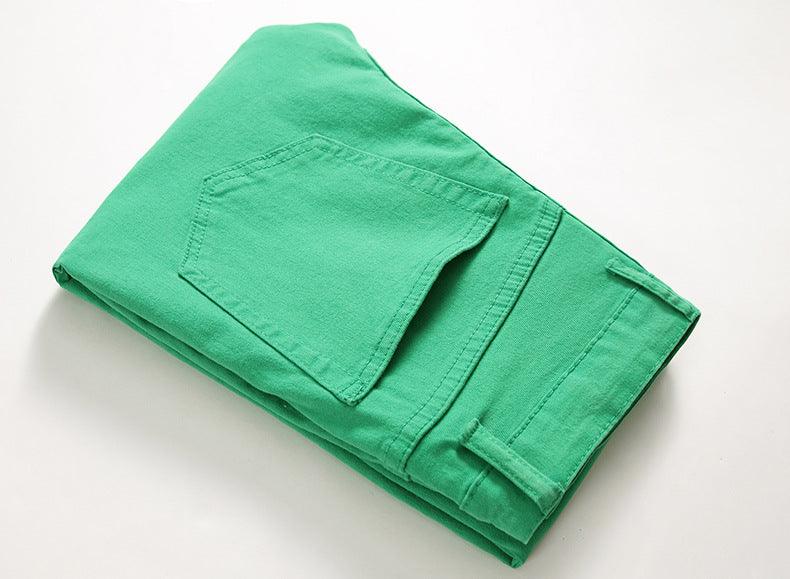 Pantalones casuales de mezclilla elástica alta para hombres europeos y americanos