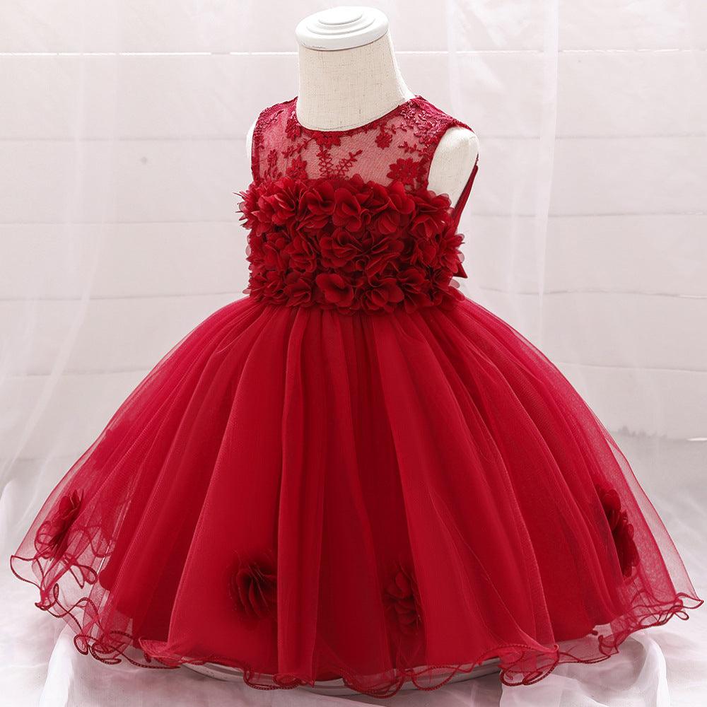Vestido de novia de malla con flores y parte superior de tubo para niños de estilo europeo y americano