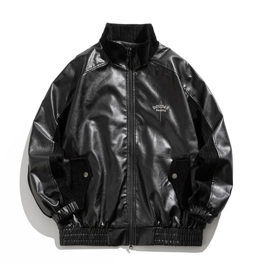 Moda estilo europeo y americano chaqueta holgada de cuero PU con cuello simulado ropa de motocicleta