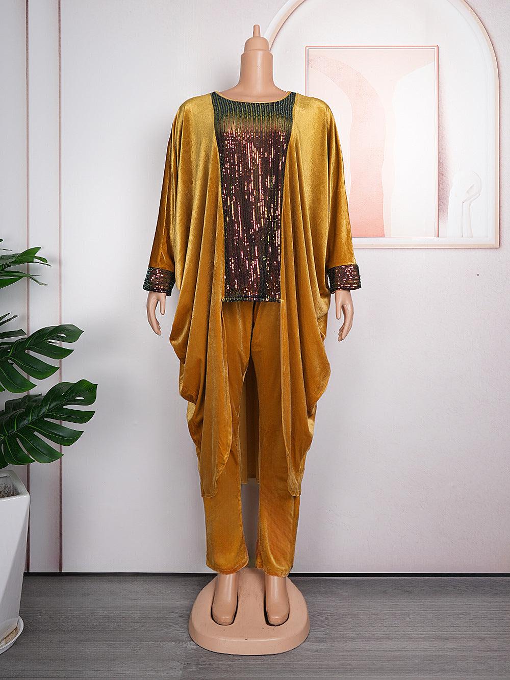 Conjunto de vestido de franela con lentejuelas y pantalones pitillo para mujer, moda informal de talla grande