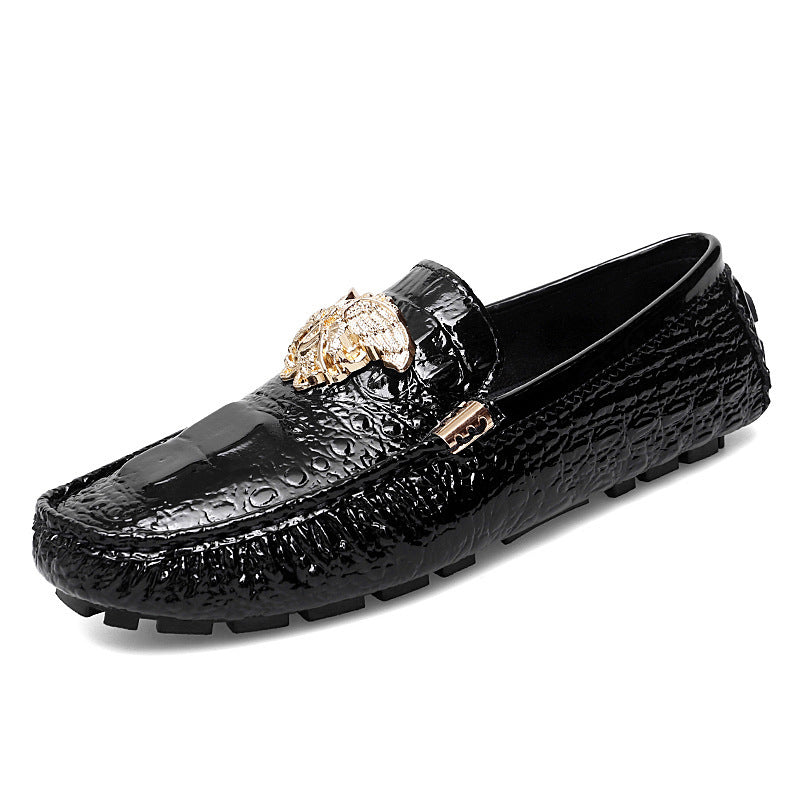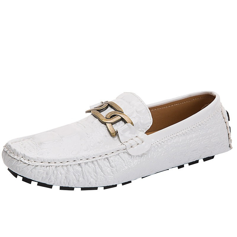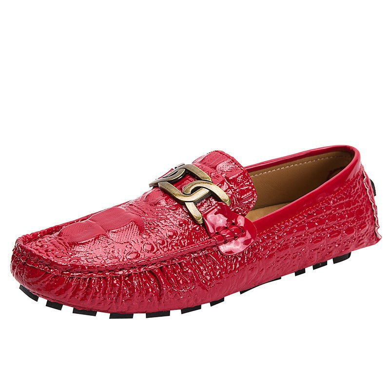 Patrón de zapatos de cuero con pedal y hebilla de metal informal.