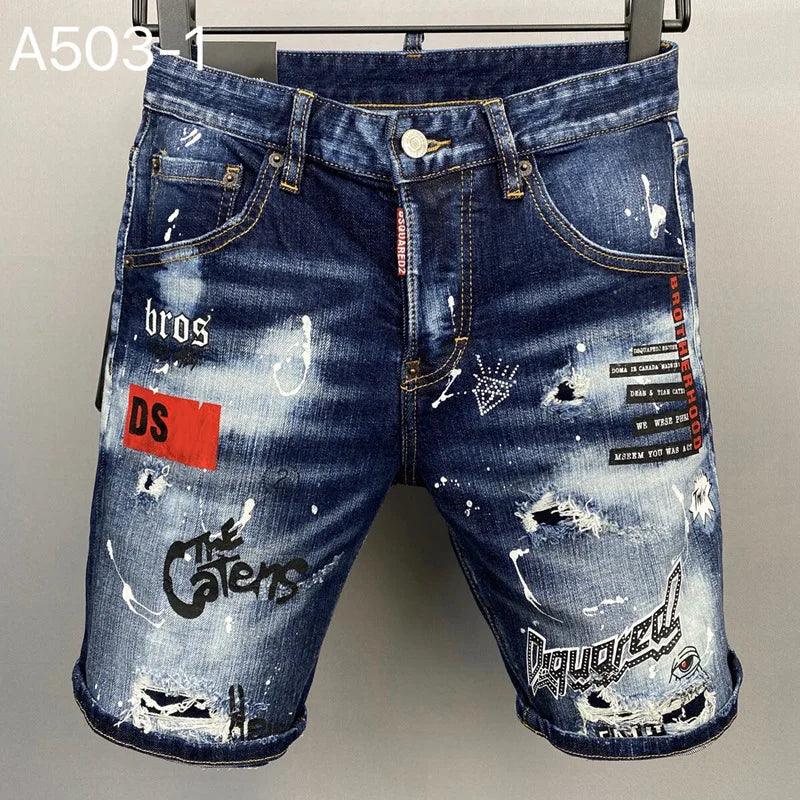 Pantalones cortos vaqueros rasgados para hombre, marca italiana de lujo, pantalones vaqueros azules Dsq, pantalones cortos elásticos de algodón para hombre, pantalones vaqueros nuevos de moda de verano para hombre