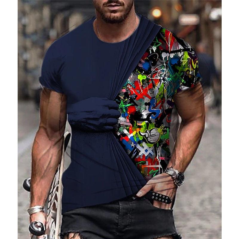 Camiseta de manga corta de gran tamaño con estampado 3D para hombre