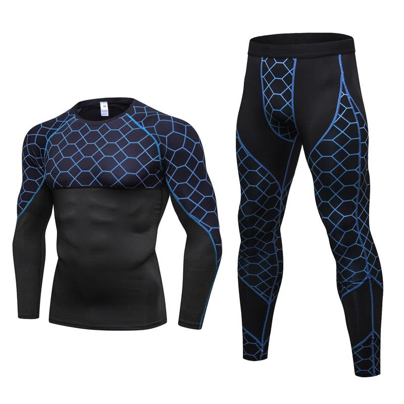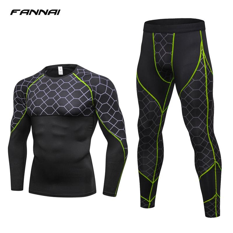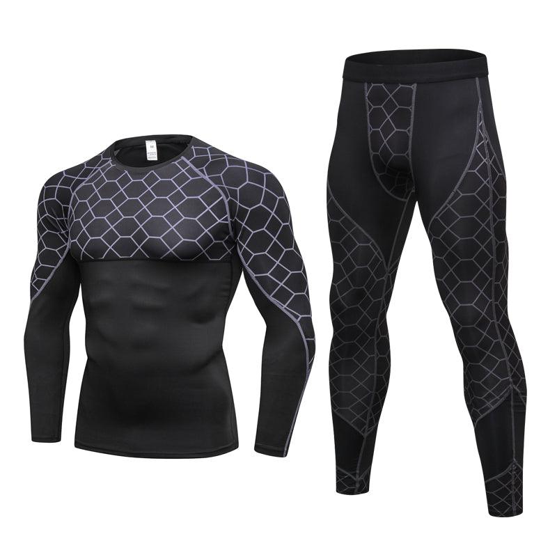 Trajes de compresión para correr y trotar para hombre, ropa de rejilla, conjunto deportivo, camiseta larga y pantalones, mallas de entrenamiento para gimnasio, Fitness, conjuntos de 2 uds.