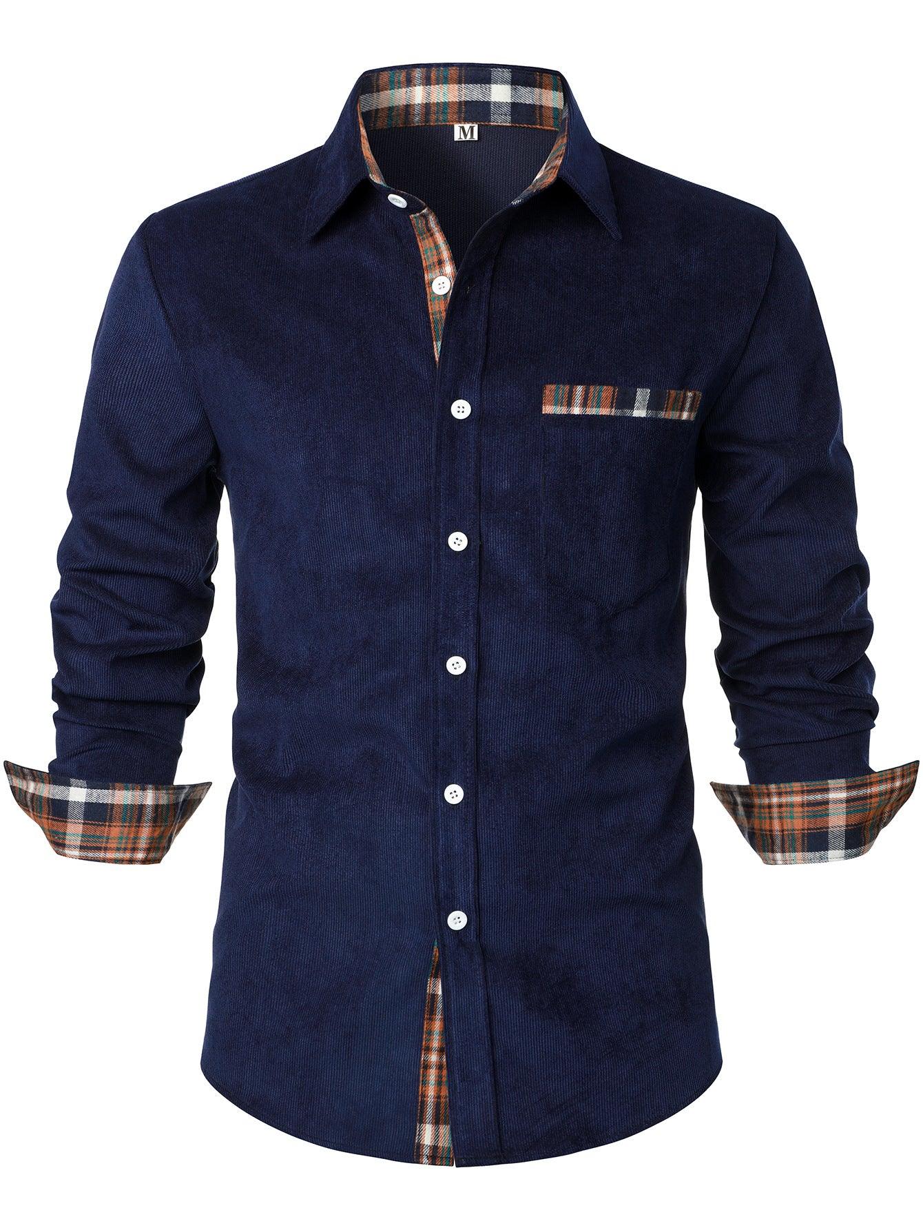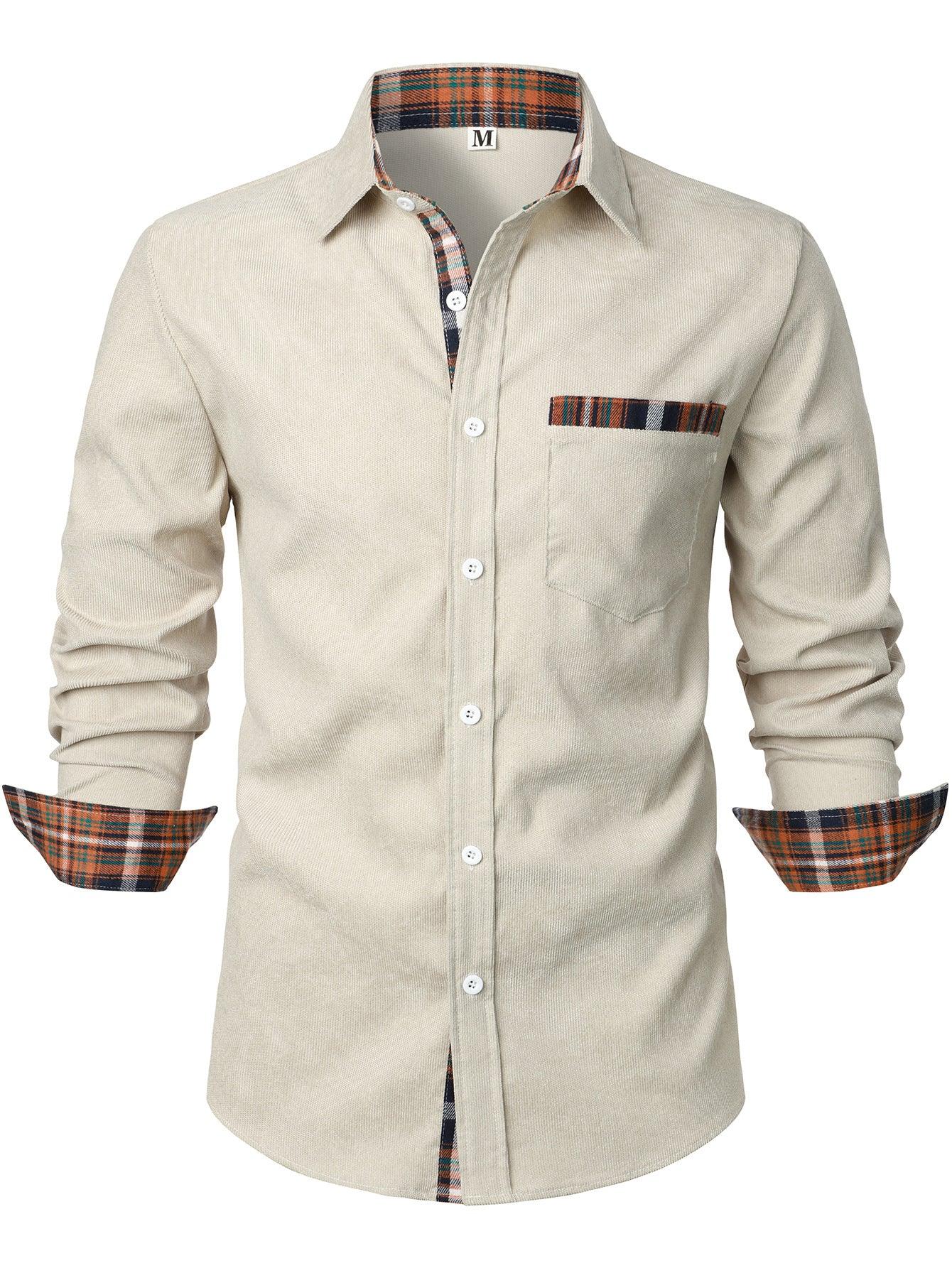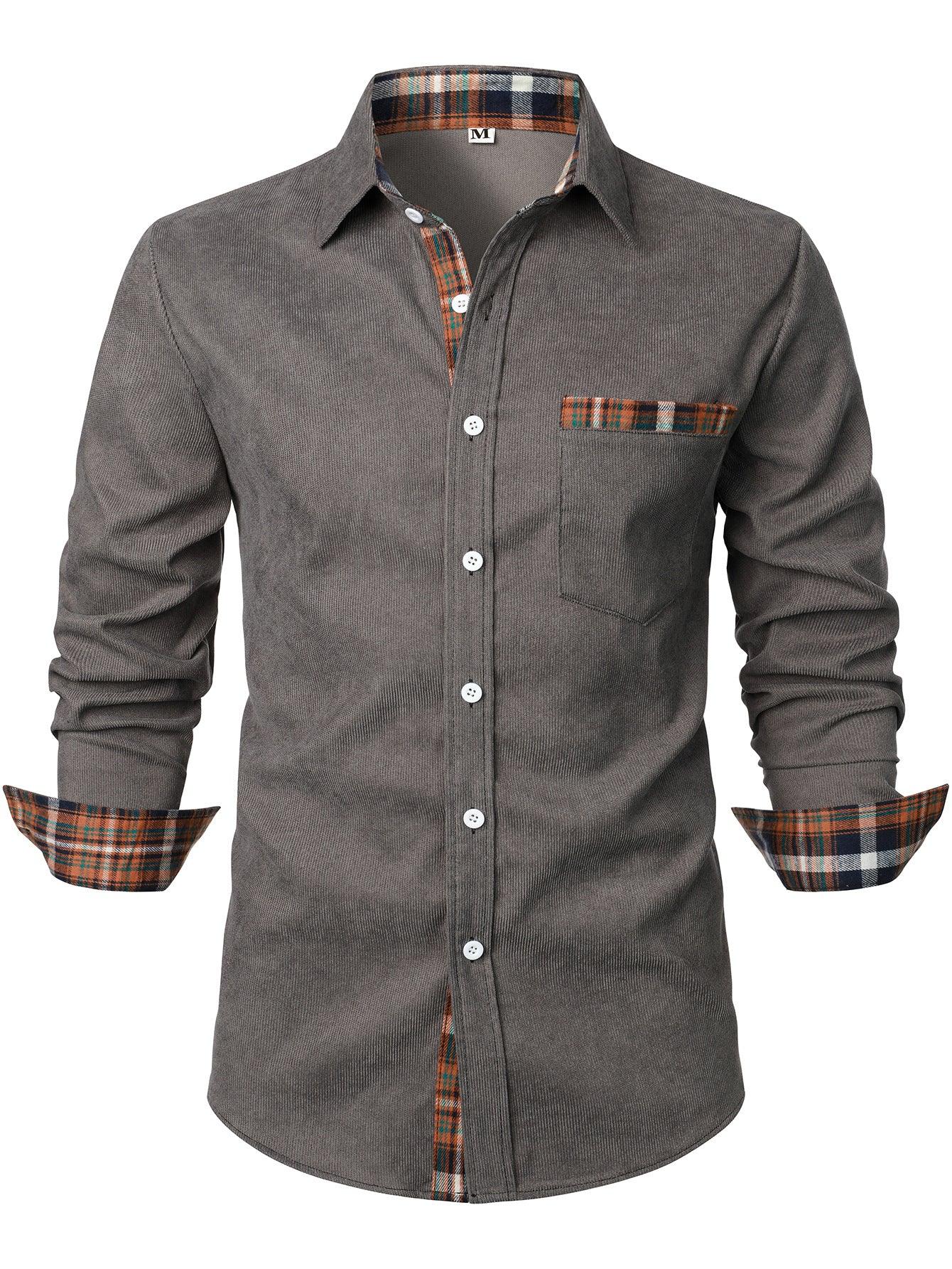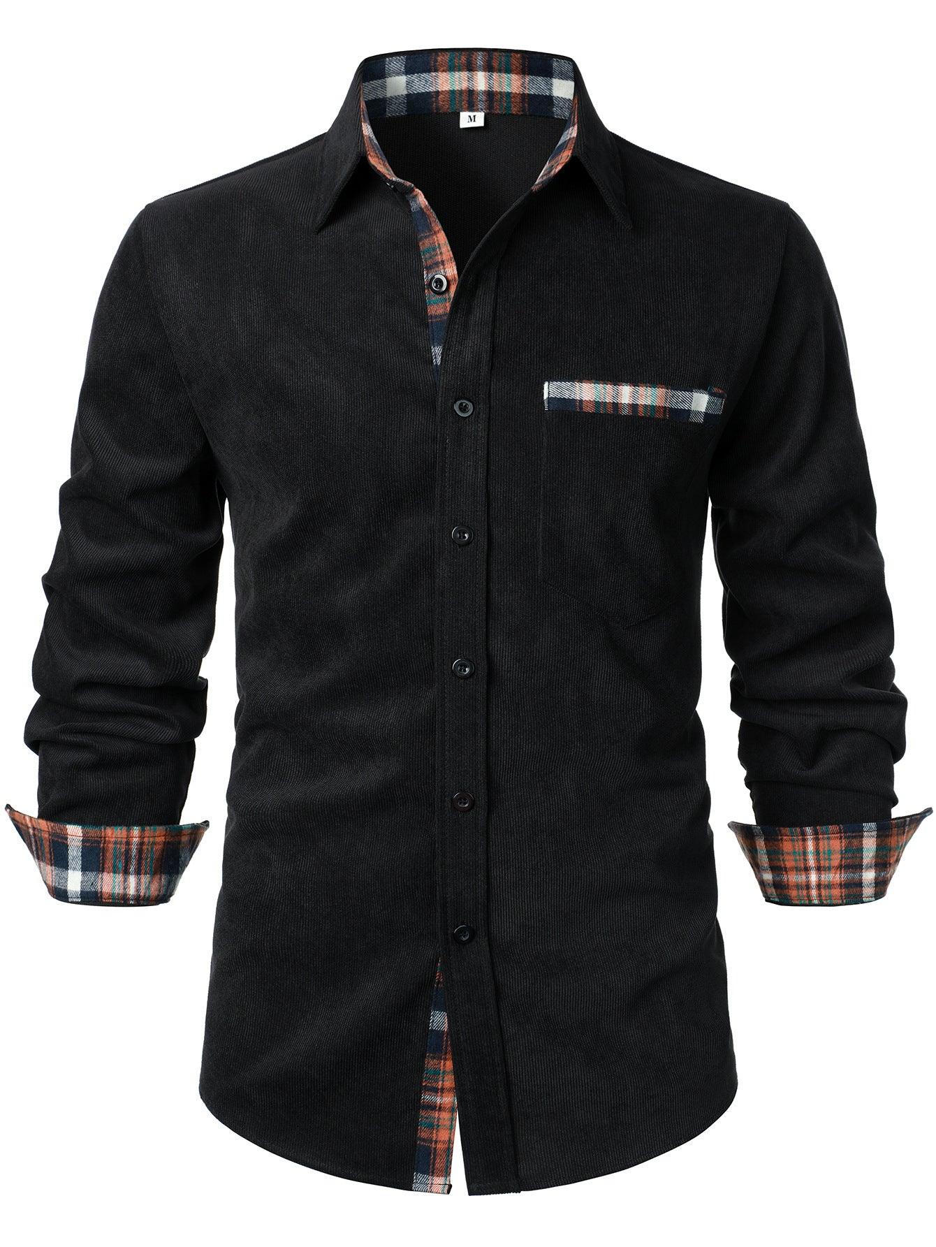 Manga larga informal a cuadros a cuadros rojos de pana para hombre