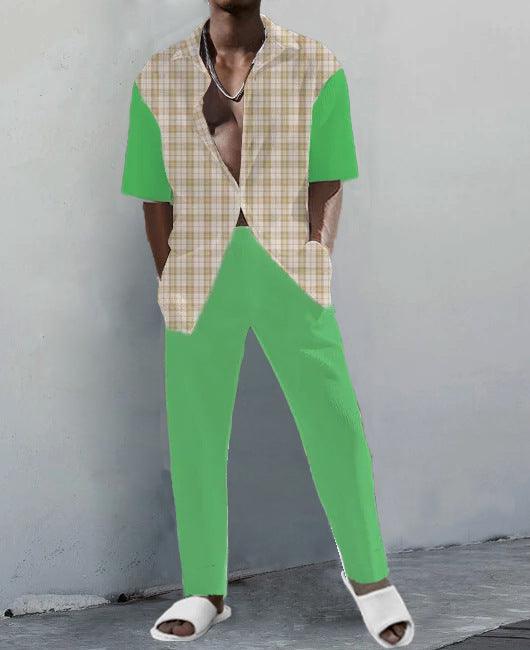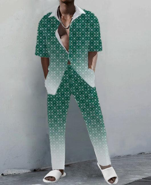 Traje de camisa de manga corta con estampado digital D de moda para hombre
