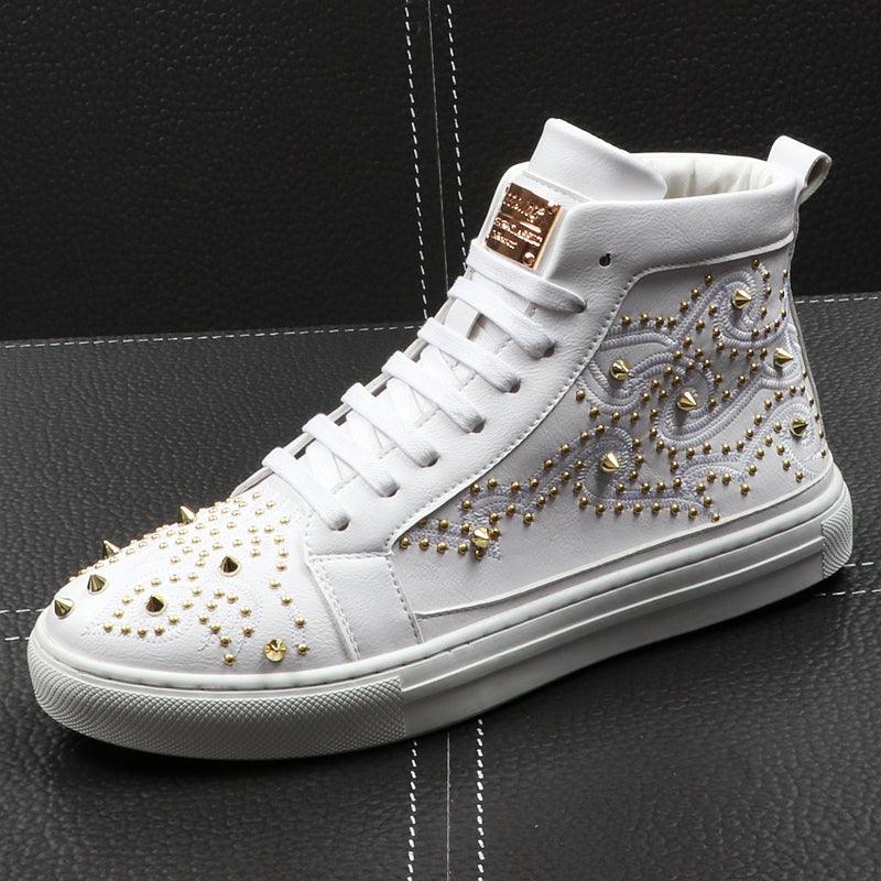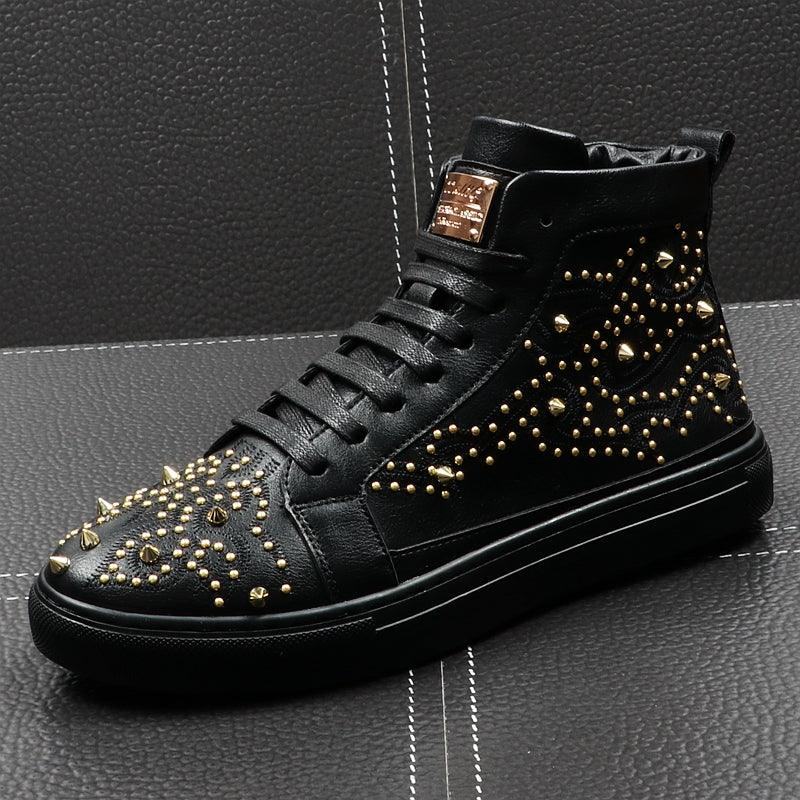 Zapatos de caña alta para hombre con remaches y personalidad, zapatos de moda de hip hop