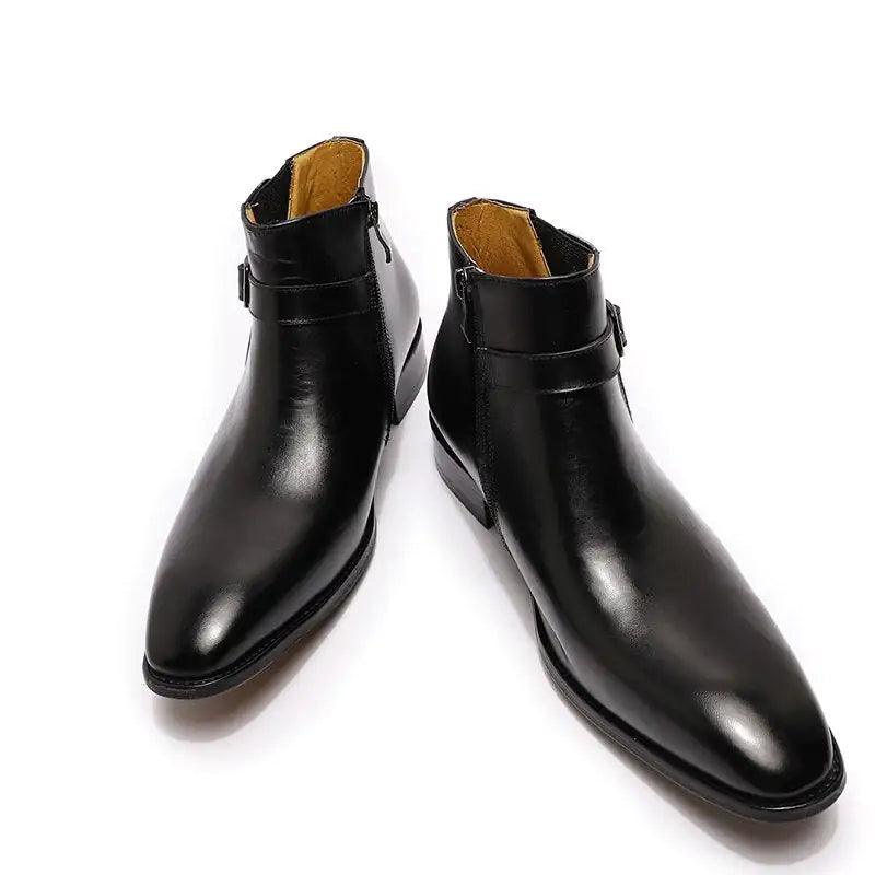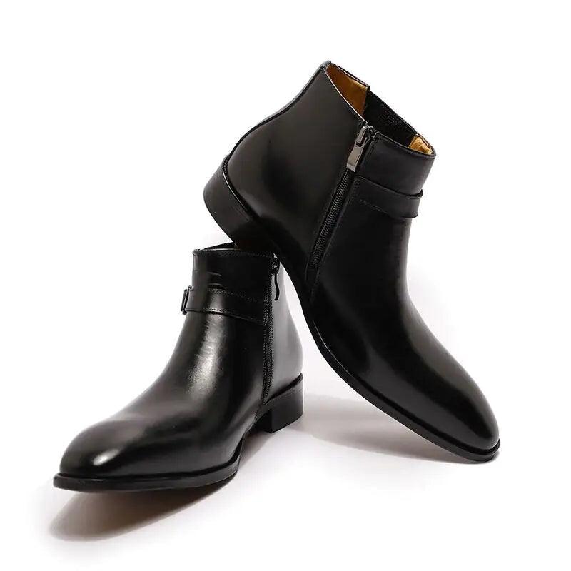 Sumérgete en el epítome de la elegancia y la comodidad con nuestras botas de vestir de cuero italiano para hombre con cremallera y hebilla, ¡donde el estilo se une a la sofisticación!