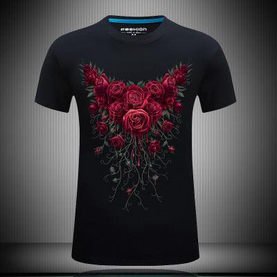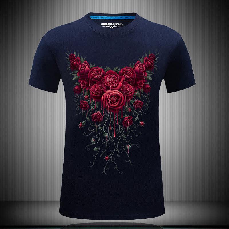 Camisetas de manga corta en 3D para hombre, algodón puro, marca tide, cuello con estampado de personajes, camisa holgada de media manga, corpulenta, extra, rosa