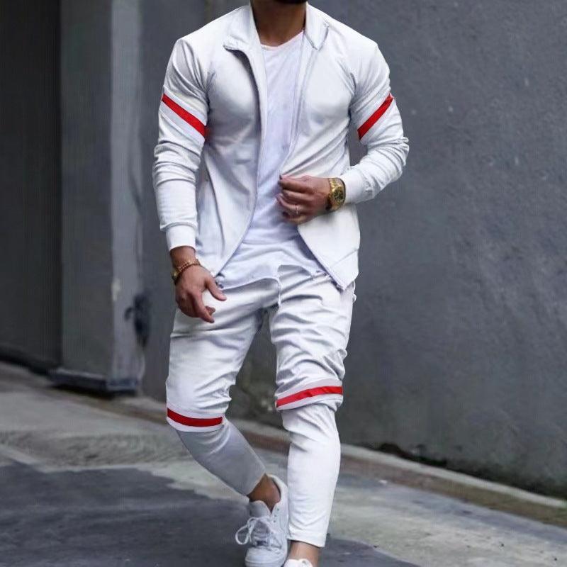 Cárdigan deportivo ajustado de manga larga para hombre, suéter, traje de pantalón informal a juego de colores
