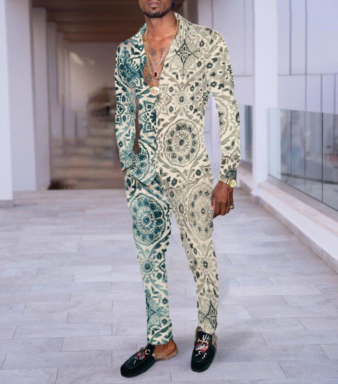 Camisa de manga larga informal con estampado 3D elegante para hombre