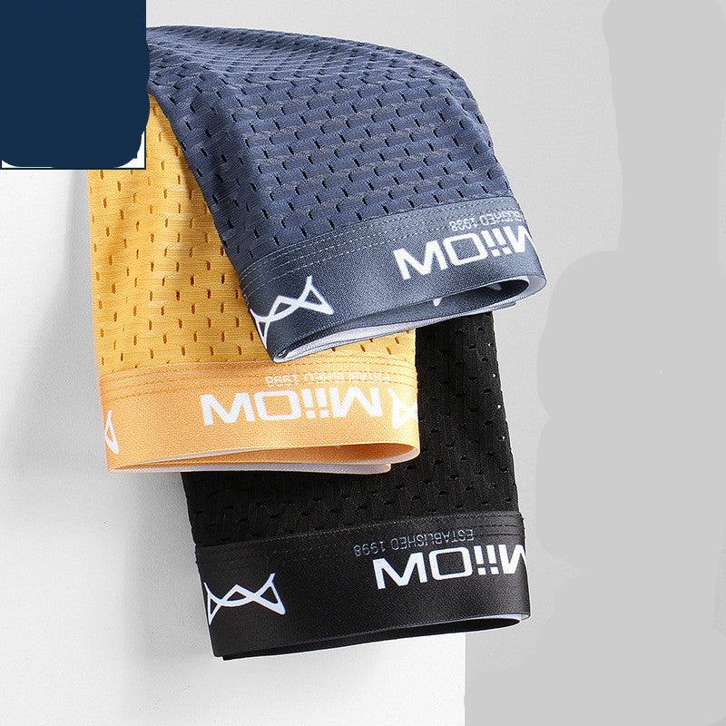 Calzoncillos tipo bóxer de malla grande con entrepierna interior de grafeno de seda de hielo para hombre