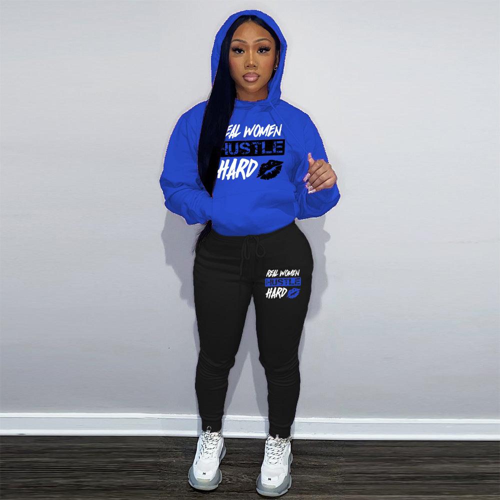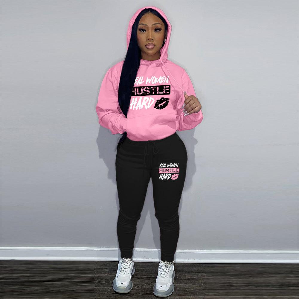 Traje deportivo informal con capucha y estampado de terciopelo Plus