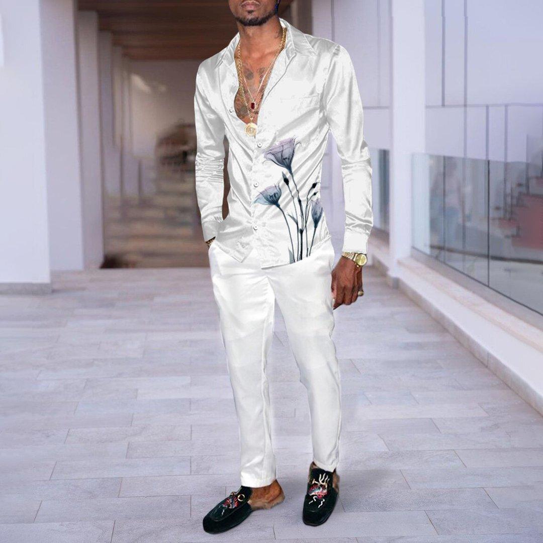 Elegante traje informal de camisa para hombre con estampado exquisito