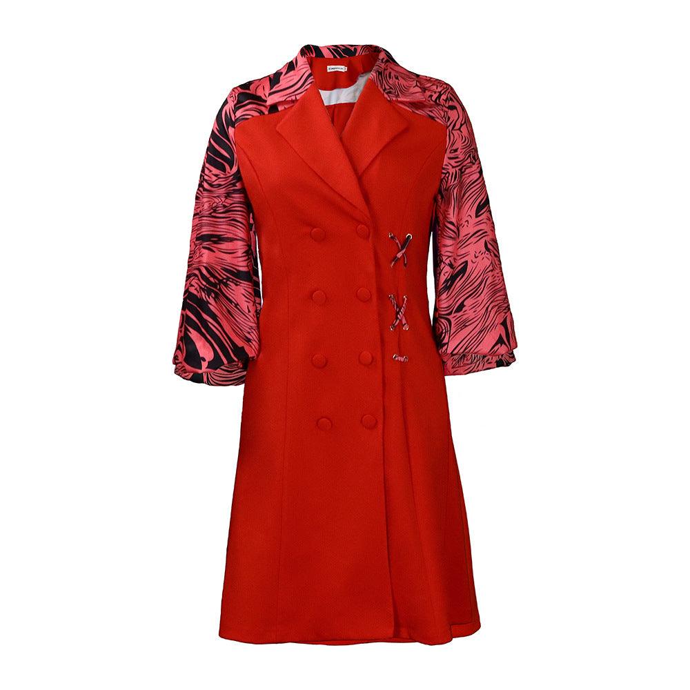 Elegante vestido de cuello de traje con patchwork y estampado Thunle