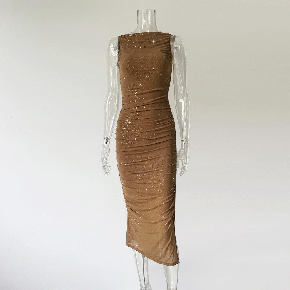 Vestido de fiesta plisado con abertura lateral ajustado para mujer