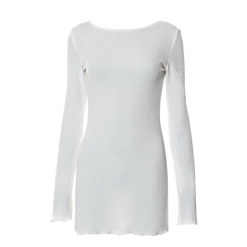 Vestido sin espalda con cordones y cuello halter de color puro con hilo de burbuja de otoño para mujer