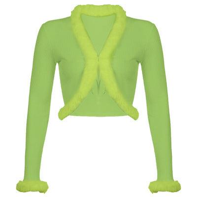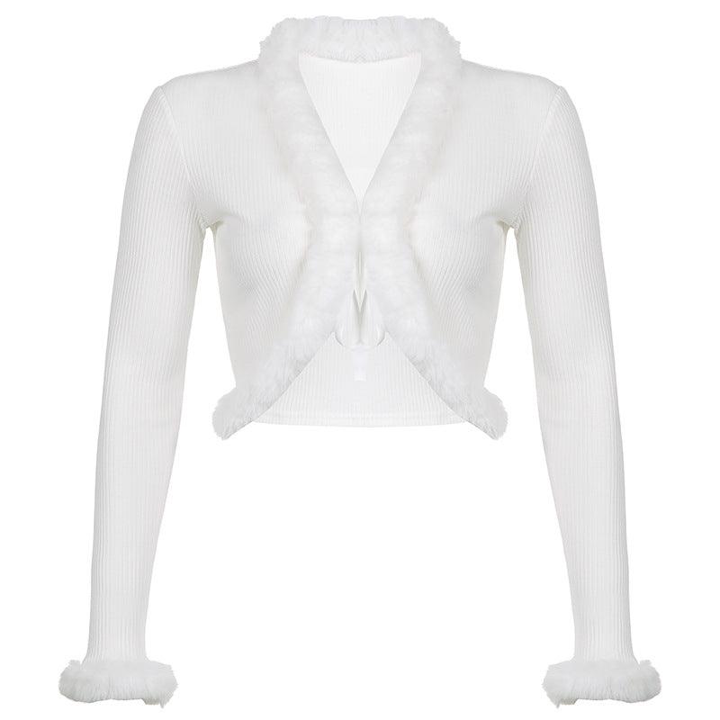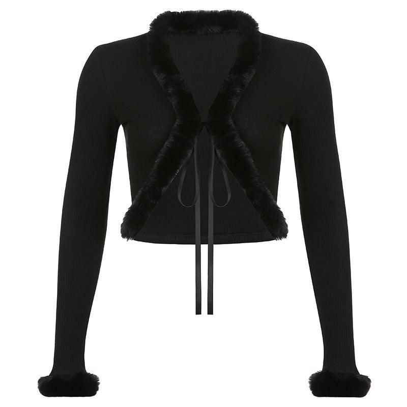 Ropa de mujer Popular cárdigan peludo corto abrigo con cuello de piel para chica caliente