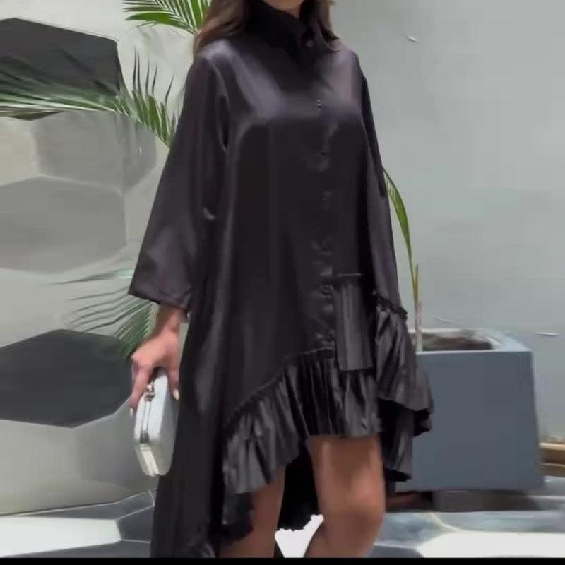 Falda camisera con dobladillo de color liso a la moda para mujer