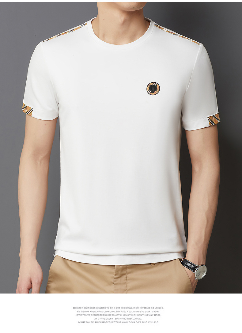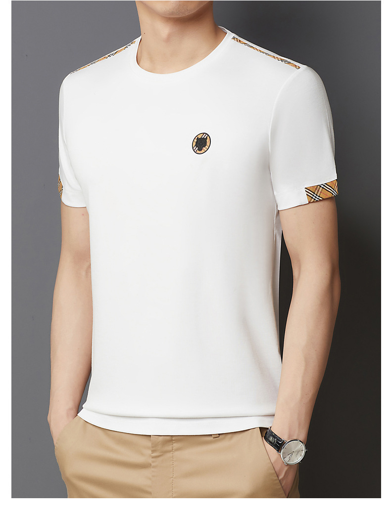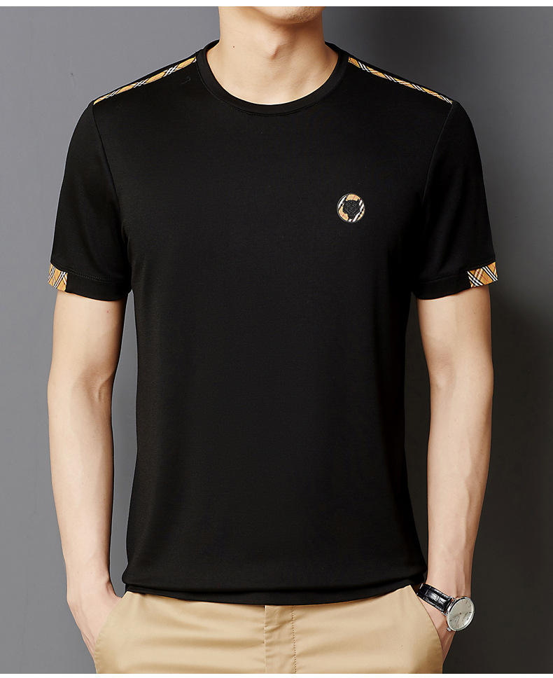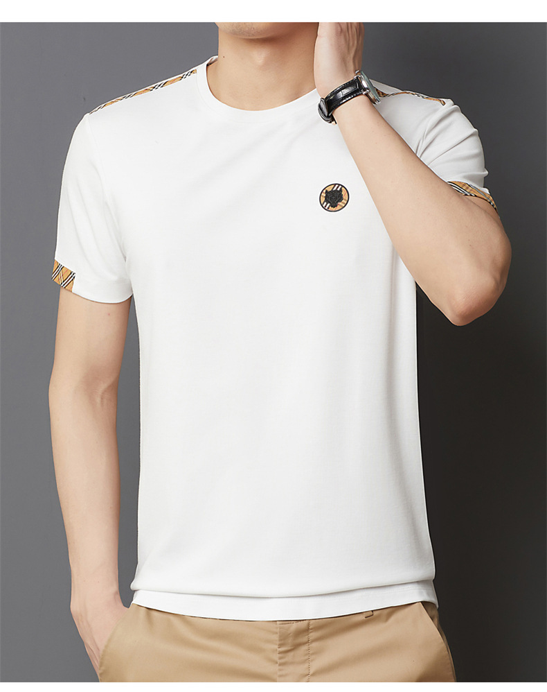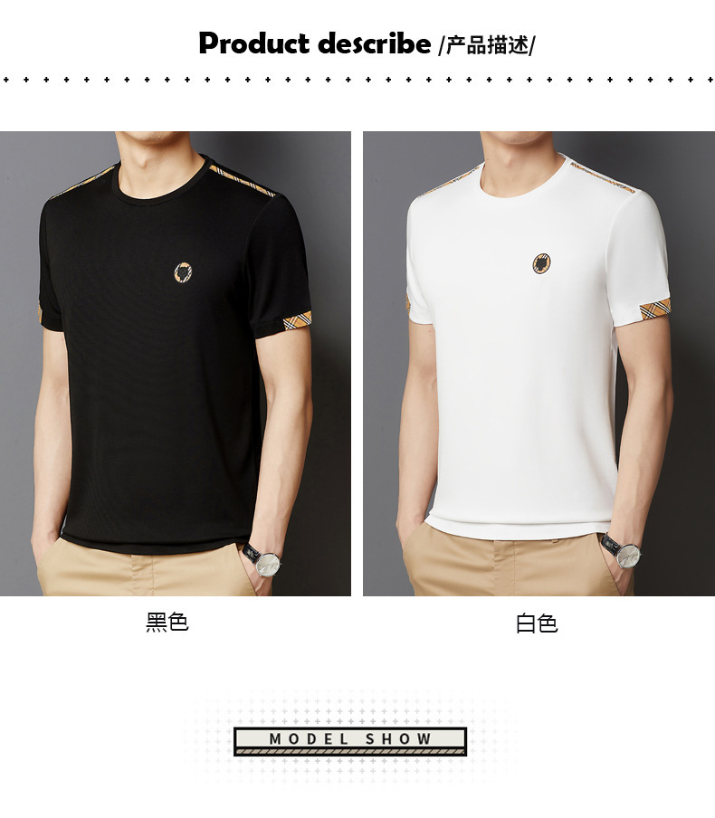 Station européenne 2022 Été Ice Silk T-shirt à manches courtes pour hommes Jeunes Version coréenne Patch mince Tendance T-shirt pour hommes en gros