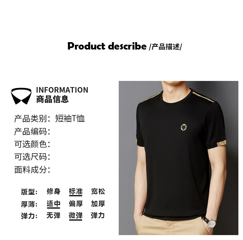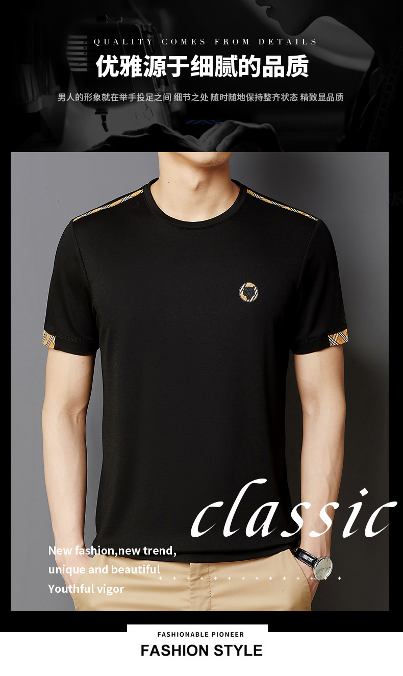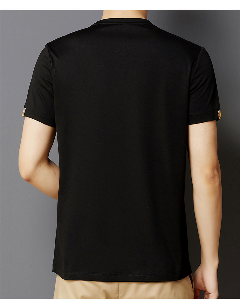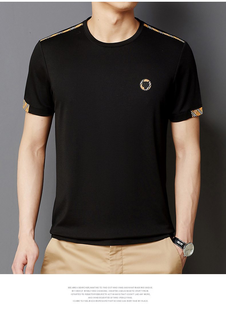 Station européenne 2022 Été Ice Silk T-shirt à manches courtes pour hommes Jeunes Version coréenne Patch mince Tendance T-shirt pour hommes en gros