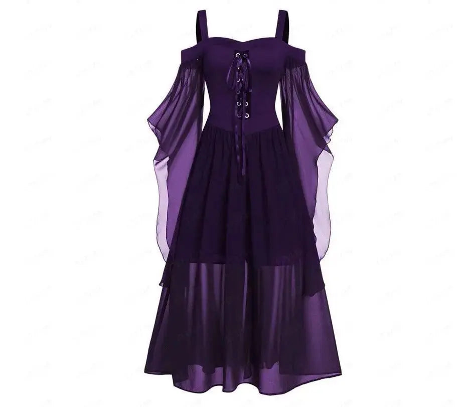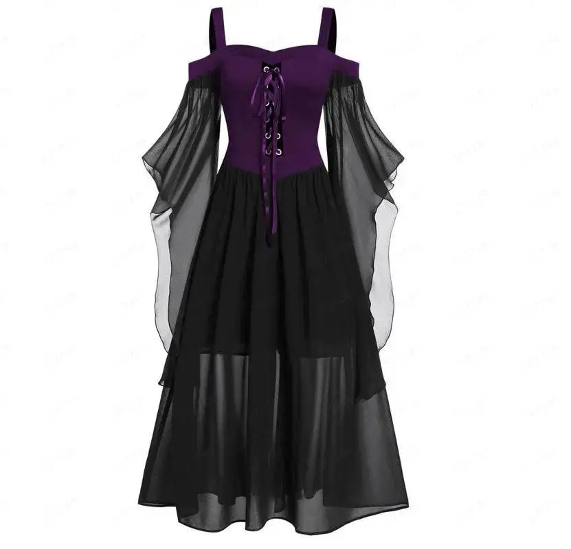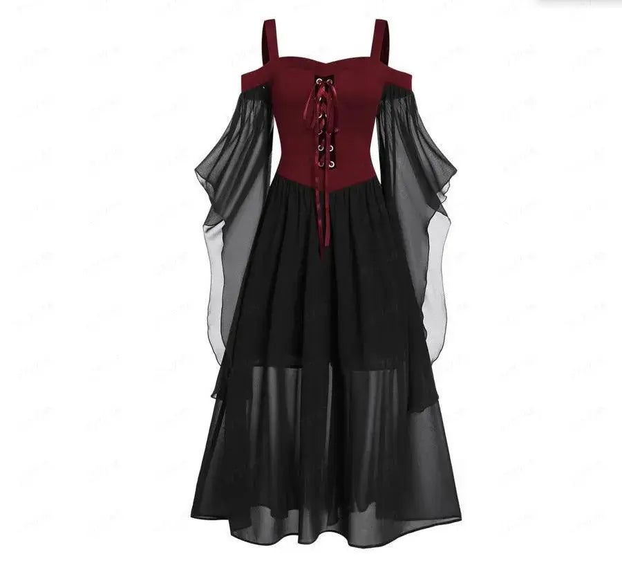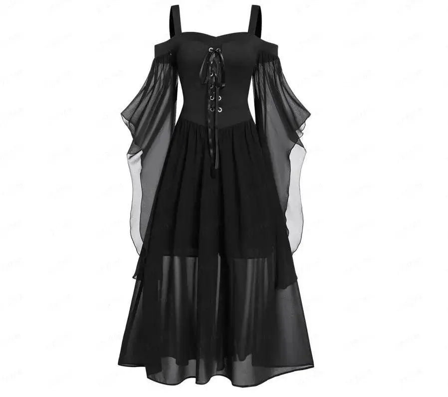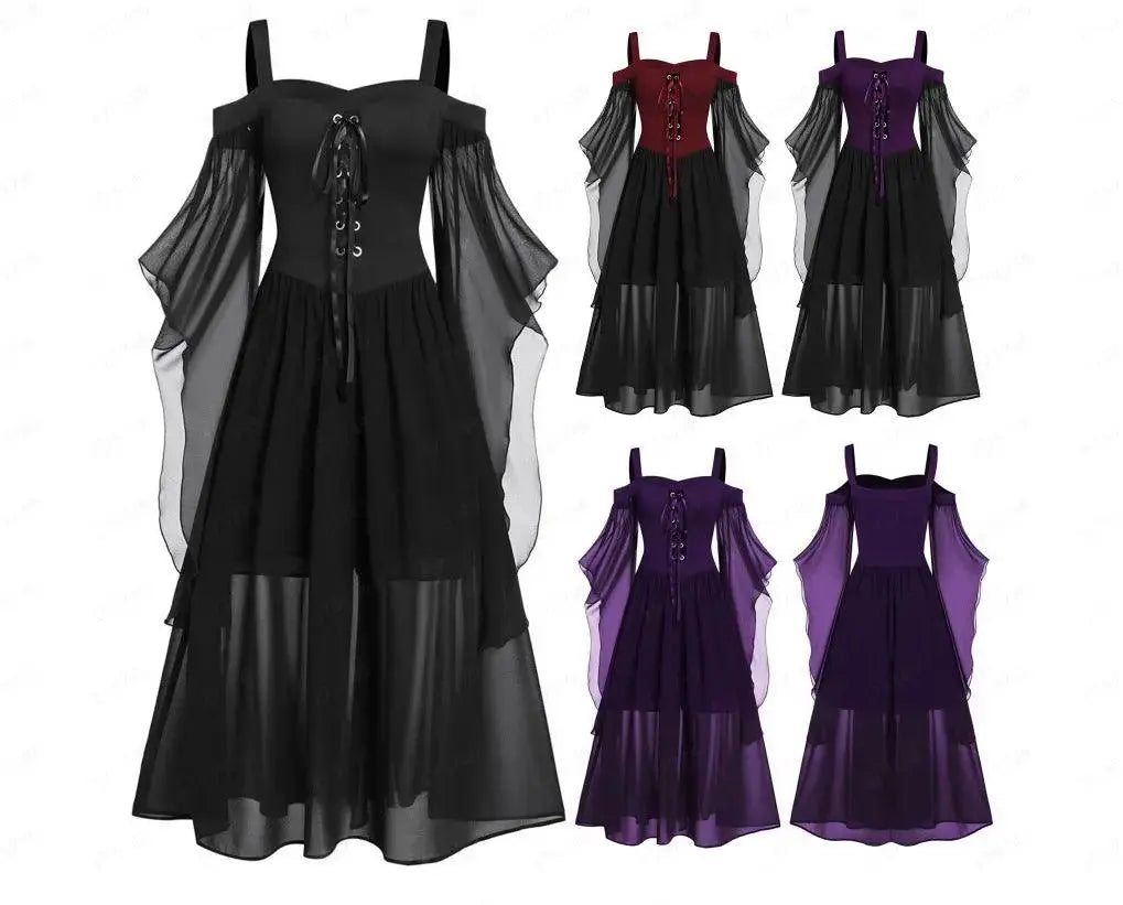 Robes gothiques pour femmes Halloween, grande taille, épaules dénudées, manches papillon, robe à lacets, robes gothiques en maille