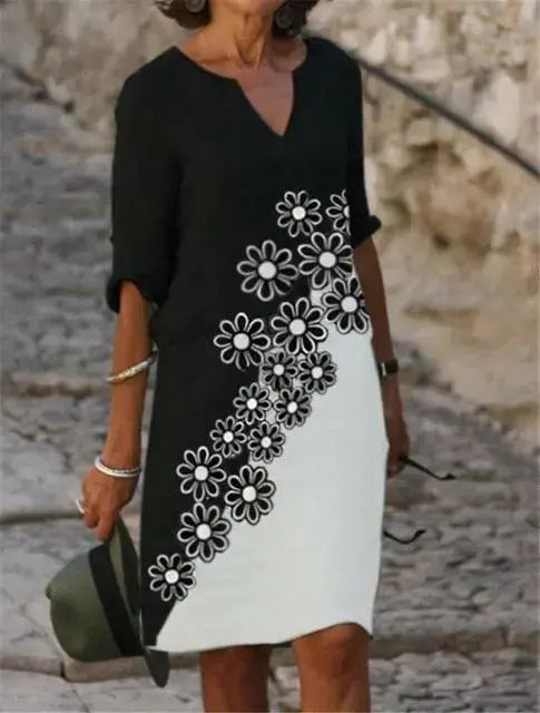 Saison : Printemps/Automne Encolure : Col en V Style de manche : Régulier Décoration : Aucune Style : Décontracté Longueur des robes : longueur au genou... En savoir plus