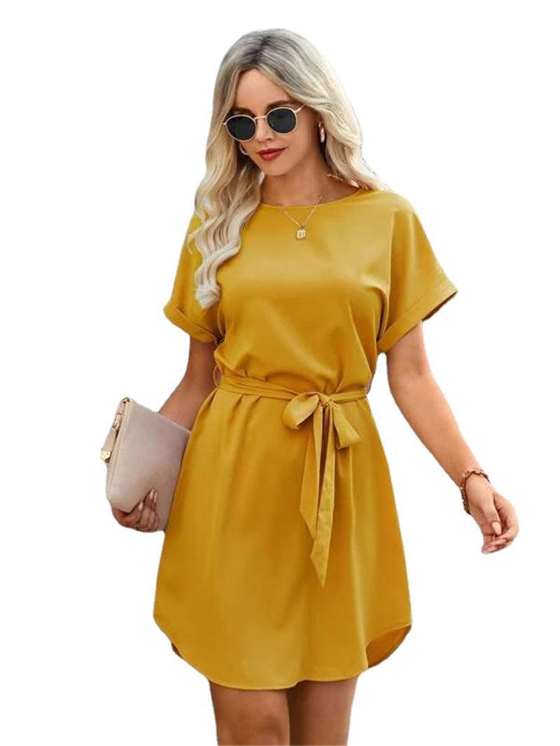 Robe ample à ceinture nouée à la taille, couleur pure, tempérament, grande taille