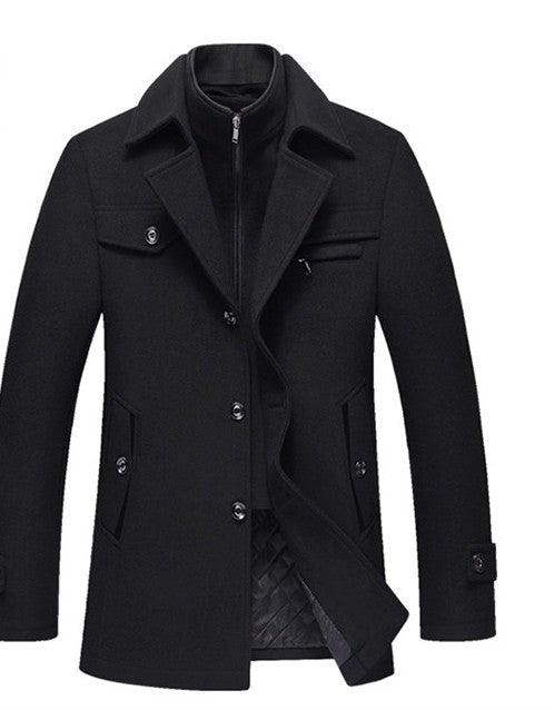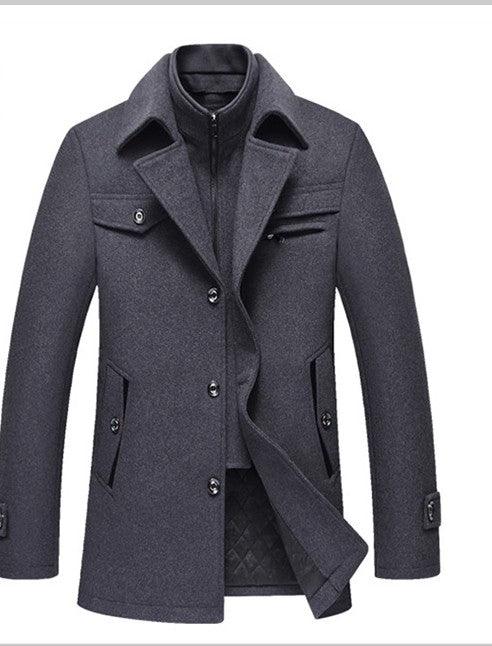 Hommes manteaux de laine hiver coupe ajustée manteaux chauds marque col détachable décontracté mélanges de laine Trench manteaux SL-F053