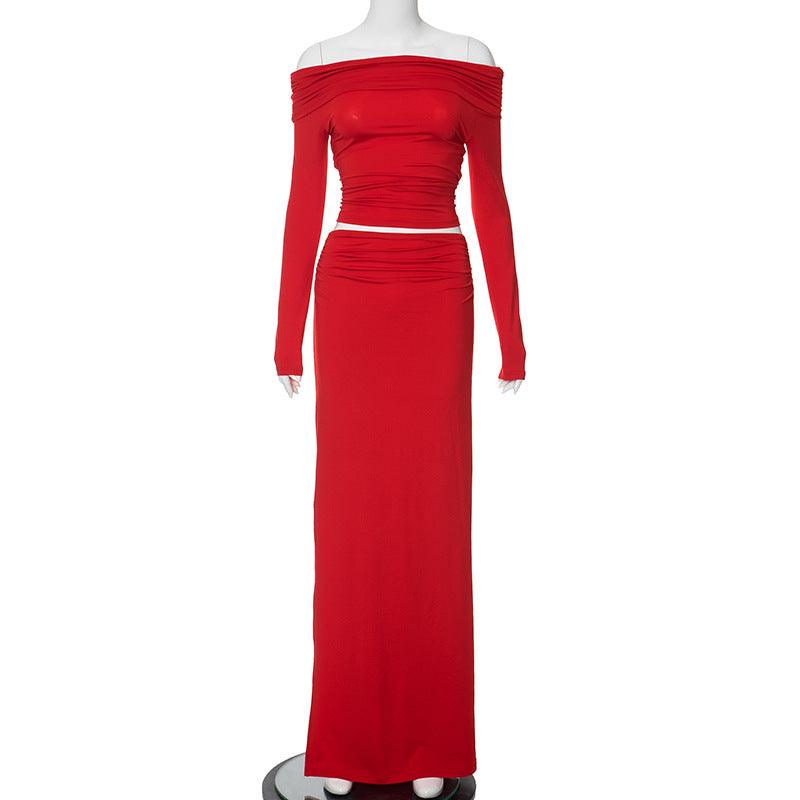 Ensemble de robe mi-longue avec haut à manches longues et épaules dénudées