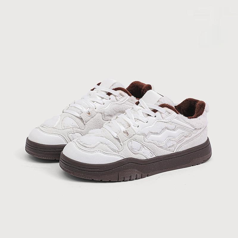 Chaussures basses pour femmes, résistantes à l'usure, absorbant les chocs, assorties avec tout, décontractées, tendance, doublées en polaire, hiver