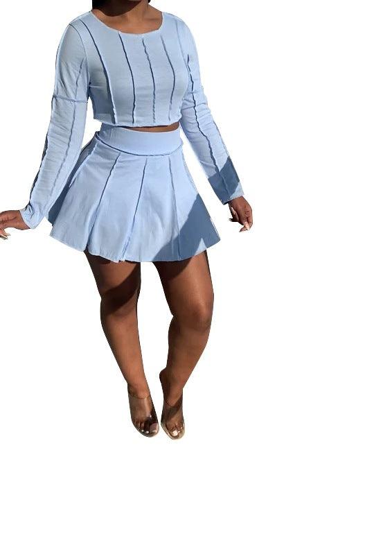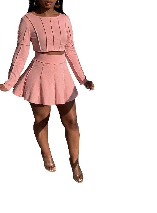 Costume jupe à manches longues décontracté et cool de couleur unie