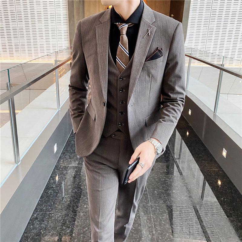 Costume trois pièces pour hommes, version coréenne décontractée, slim business, petite veste de costume, robe de banquet de mariage