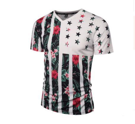 Été créatif plante fleurs étoile impression personnalité col en v hommes à manches courtes T-Shirt vêtements transfrontaliers pour hommes