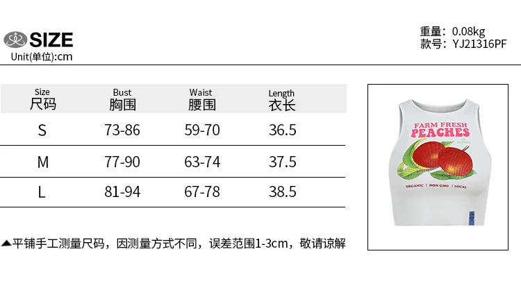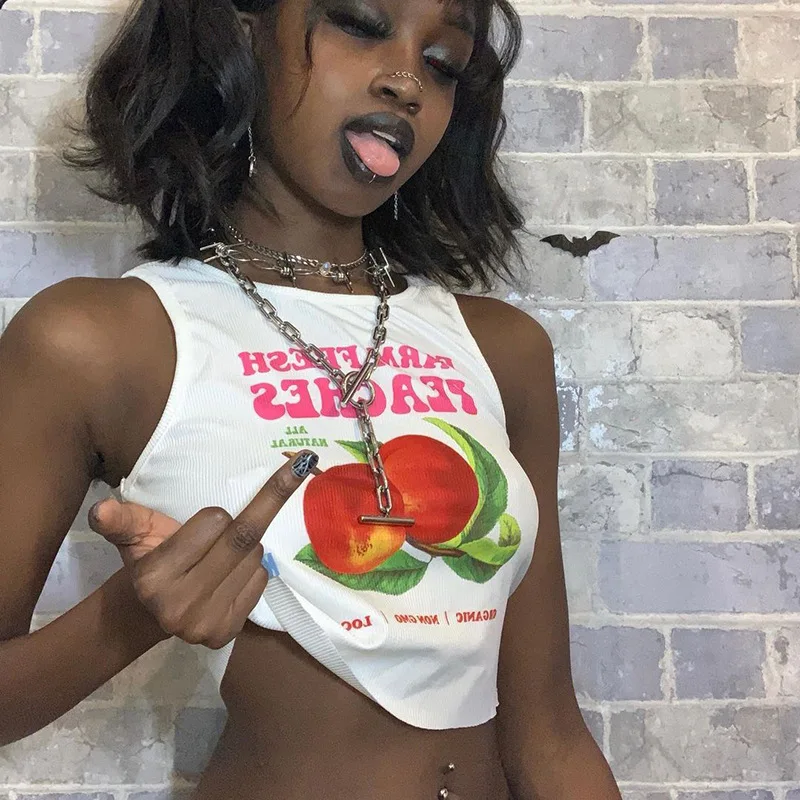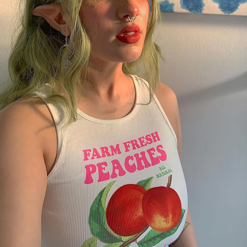 Top moulant imprimé pêche Y2k pour femme, pull sans manches, débardeur, sexy, nombril, slim, vêtements d'été, grunge, haut court, vintage