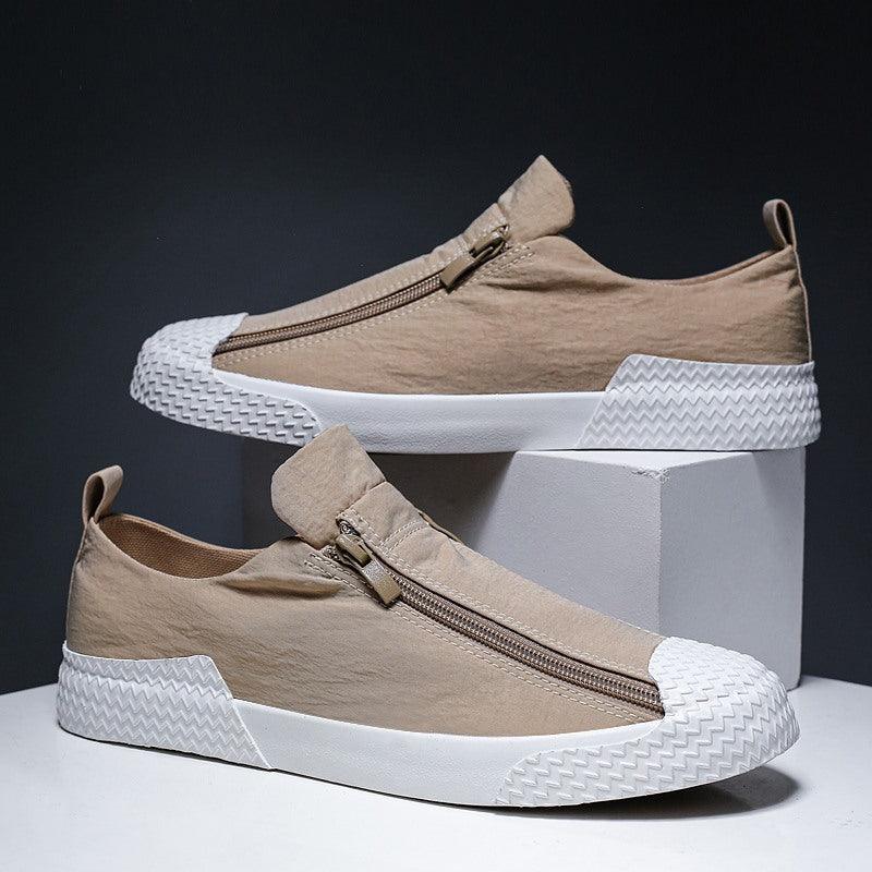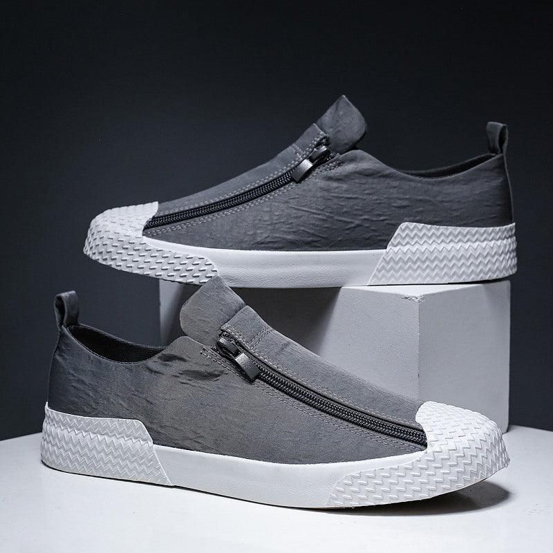 Chaussures de sport basses en tissu parapluie pour hommes, baskets de sport décontractées avec fermeture éclair latérale