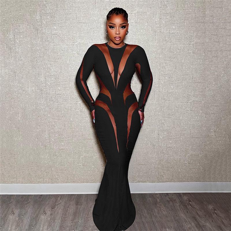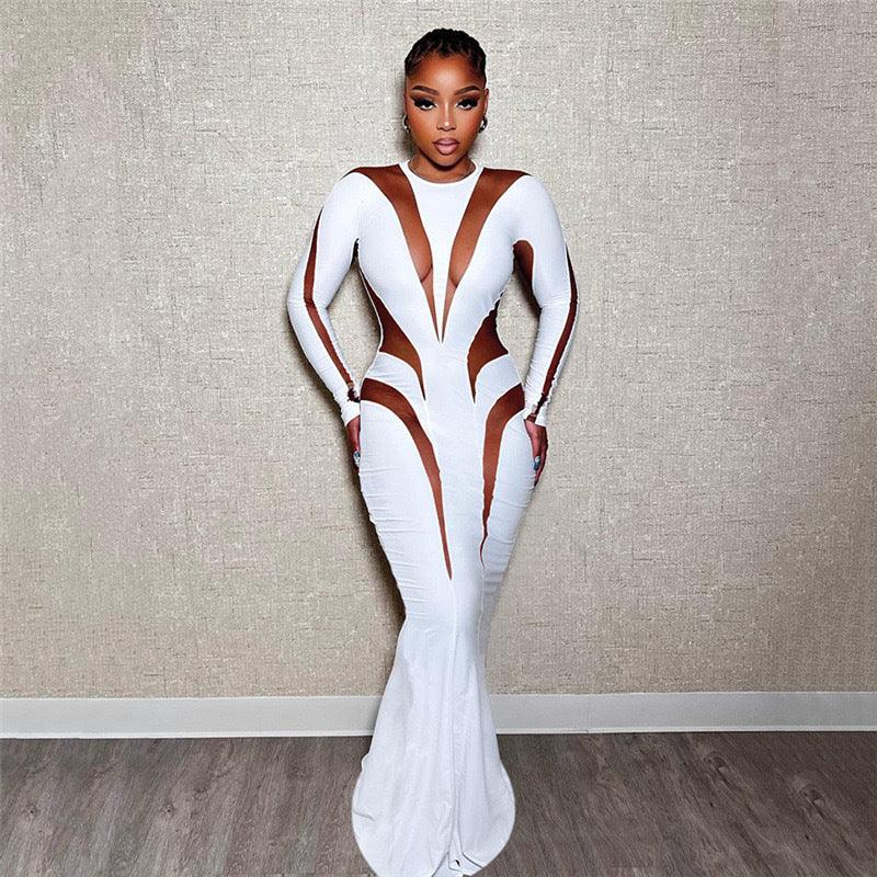 Jupe longue en maille pour femmes, couture aux hanches, robe Slim de couleur unie