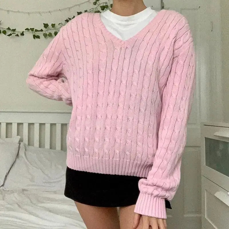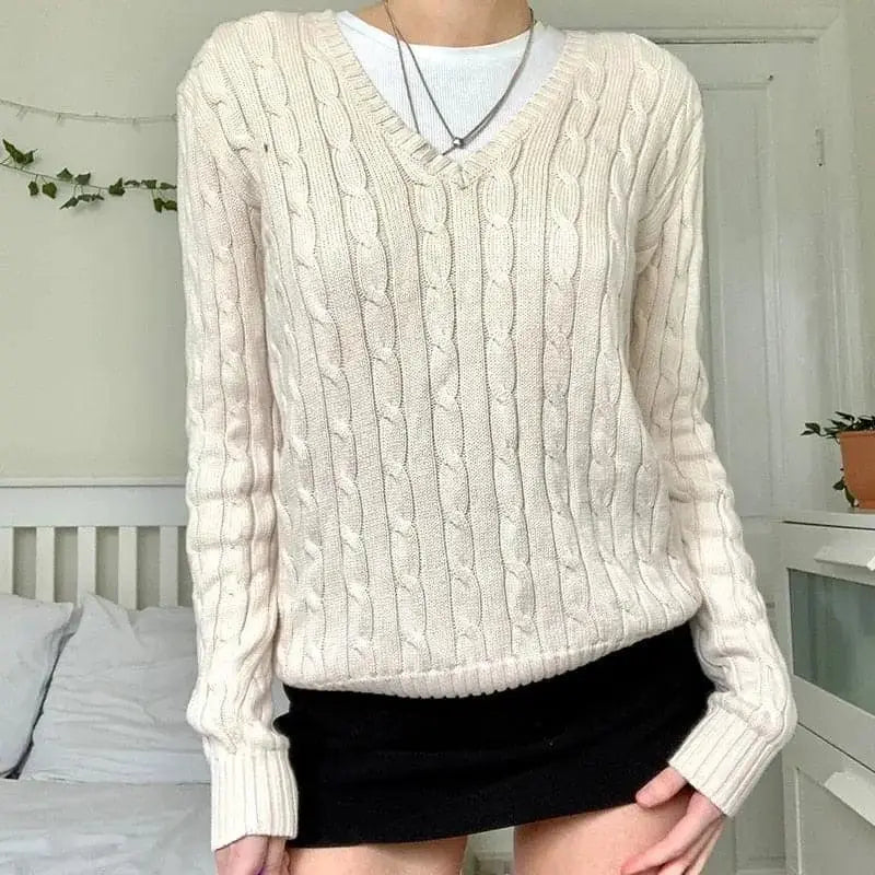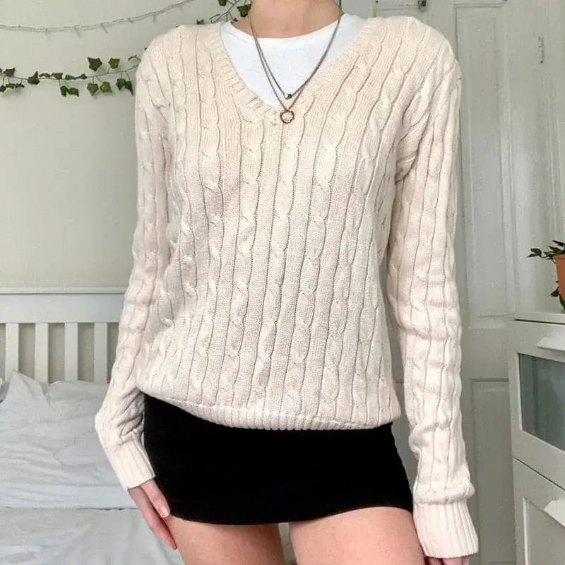 Pull tricoté à câble torsadé Preppy Y2K