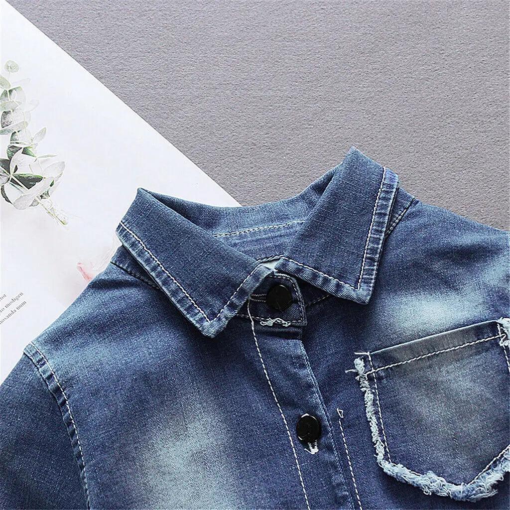Children Summer Clothing Toddler Baby Girls Denim Dress Long Sleeve Party Casual Tutu Chiffon Patchwork Kids Dresses 6M-4T