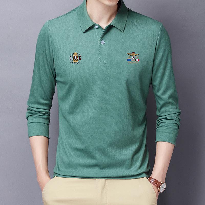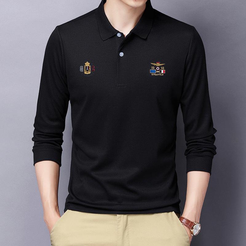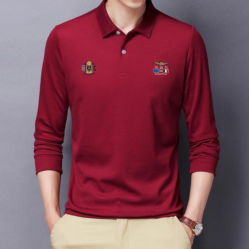 New embroidery men Polo shirt young Korean version of loose lapel lead long-sleeved T-shirt men's clothing