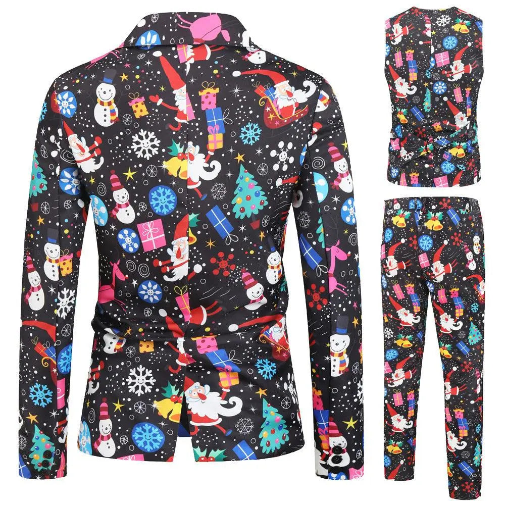 Men's casual suit 3 sets of Christmas 3D print western clothing suits evening dress tide
