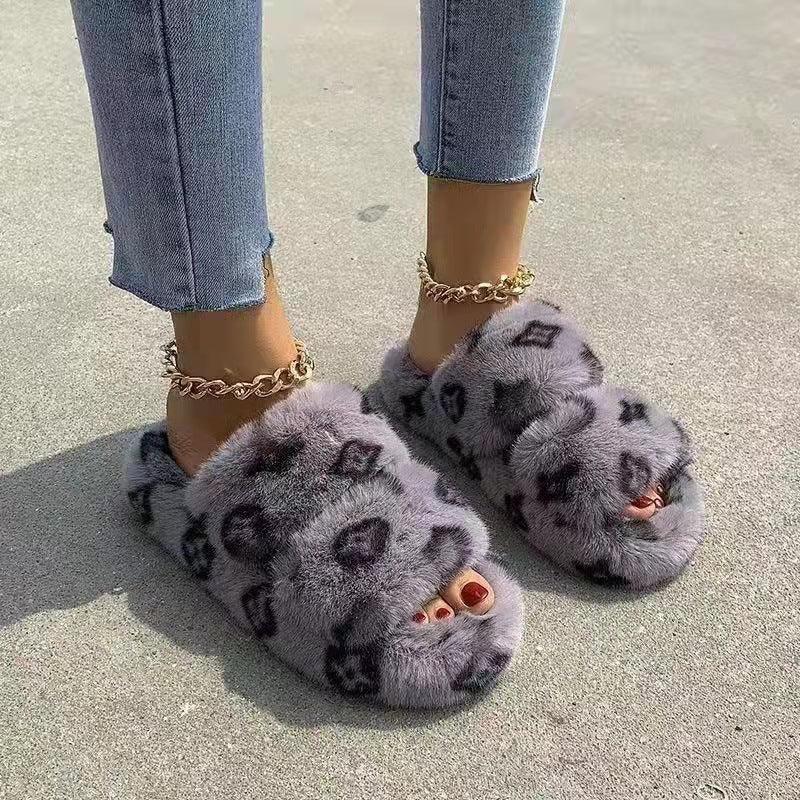 Warm home plus fleece cotton shoes for outerwear fashion plus size women's fur slides